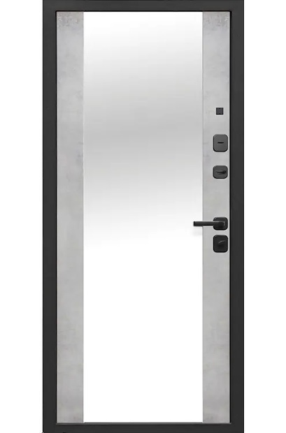 Входная дверь 10 см 2МДФ Сатин черный Бетон снежный зеркало